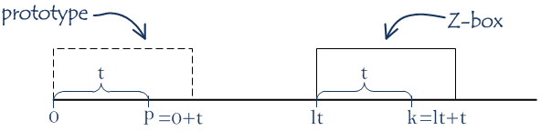 Let’s consider the concept of Z-box. Take the string S = “abcxxxabyyy”. We have an internal part “ab” in the string which repeats its prefix. The internal “ab” is a Z-box. It has the beginning at the position with index 6 and the end in 7 (0-based). Z-boxes are substrings which match string prefixes with the same length. For the Z-box, let’s call the corresponding prefix the prototype (it’s my term but I think it’s OK to use it.)