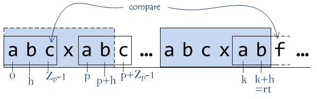 S(k..k+Zp-1)andS(p..p+Zp-1)are identical because indexeskandk+Zp-1,pandp+Zp-1lie inside the Z-box and its prototype at the same relative positions; - substrings